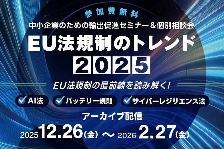 「中小企業のための輸出促進セミナー&個別相談会」EU法規制のトレンド2025 アーカイブ配信(外部リンク)