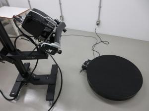パターン投影式三次元デジタイザと回転テーブルの外観
