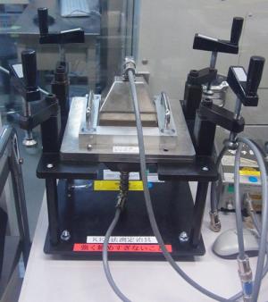 電磁波シールド材評価(KEC法)の治具の正面の様子
