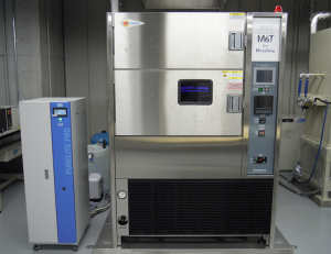 光、熱、水などの屋外での劣化因子を人工的に再現し、短期間で製品の長期耐久性を評価します。メタルハライドランプは太陽光の約15倍から30倍の強大な紫外線量を照射します。そのため、他の促進耐候性試験に比べて促進性に優れ、早期に劣化現象を評価できます。