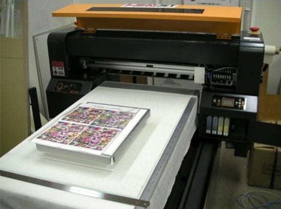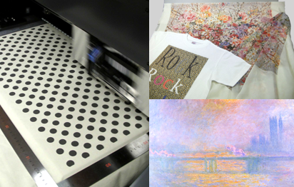 顔料インクを使用していますが、十分な染着と実用的な消費性能を得るために、前処理(薬剤は当センターで用意)と熱プレス機による後処理(別途機器利用料金発生します)が必要です。