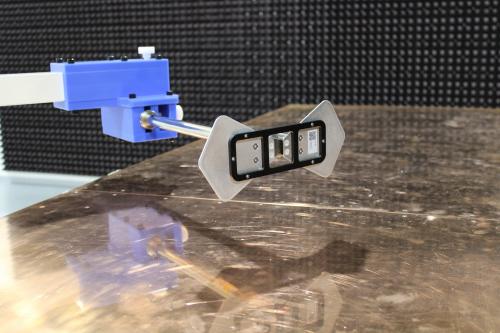 車載機器が無線機近傍に置かれる環境を模擬し、電磁界を発生させたアンテナを近づけて誤動作等がないかを試験