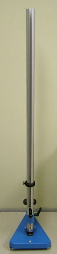 塗膜が変形したときの割れや素地からのはがれを調べるための試験機です。試験は、固定器と受け台の間に試験片を挟み、一定の高さからおもりを落下させて、衝撃変形による塗膜の割れ・はがれの有無で判定します。また、塗膜の割れ・はがれが認められない最も高いおもりの高さとしても評価します。