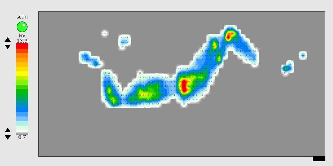 ベッド・座面などの平面から身体に加わる圧力分布を測定し、画像として表示する