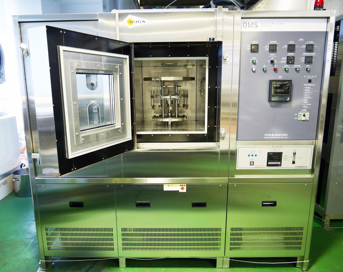 オゾン雰囲気の槽内で、ゴム・繊維材料のオゾン劣化の促進試験
