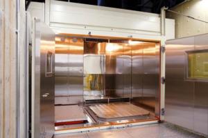 振動試験機と恒温恒湿槽を組み合わせた装置です。ロボットなどの試験体に、温湿度等の気象環境と振動・衝撃等の物理的な環境のストレスを模擬して耐性を評価できます。