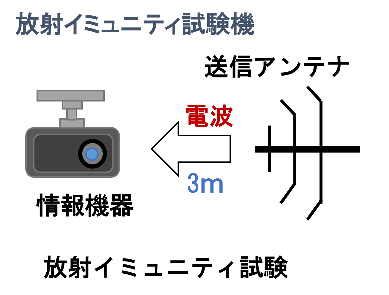 ◆機器の概要:電磁波を製品に照射して、誤動作が起こらないことを確認する。