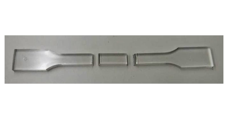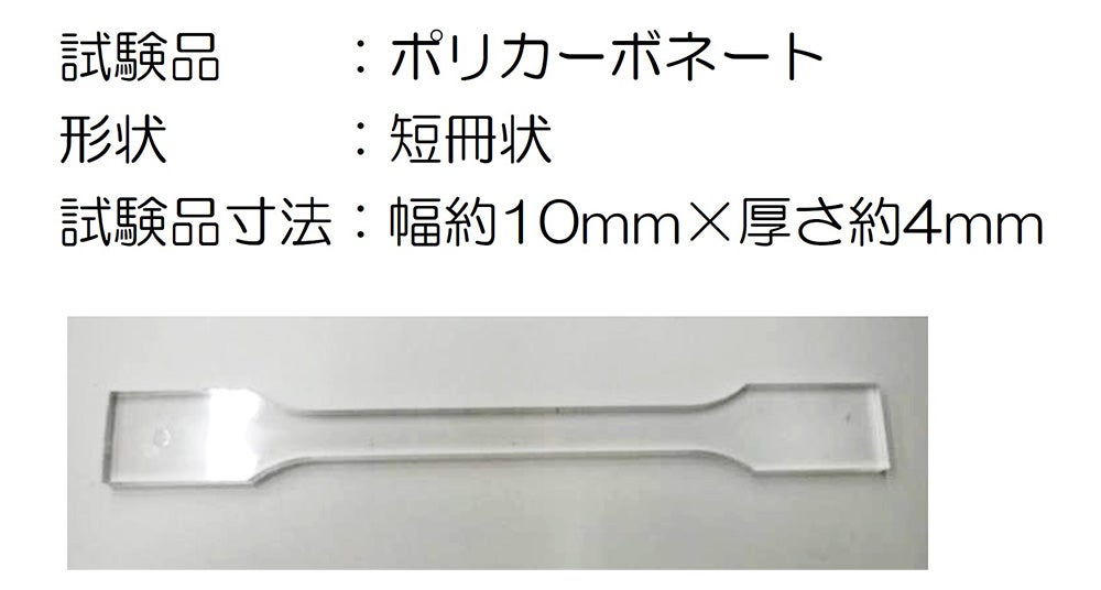 せん断試験の事例を図13に示します。試験品は図13(a)のようなポリカーボネートの短冊材です。