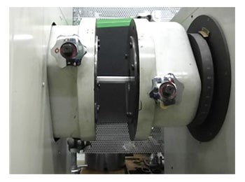 試験には図15に示すようなねじり試験機を用いました。ねじり試験機は片側が固定、反対側が回転駆動することで試験品にトルク(ねじりモーメント)を負荷する試験機です。ねじり試験機のチャックは三つ爪チャックになっていますが、丸棒ではすべりが生じるため、チャック部はDカットを3面に施したり六角形状にしたりする必要があります。本試験品は六角材なのでそのままチャックしました(図14(b)参照)。