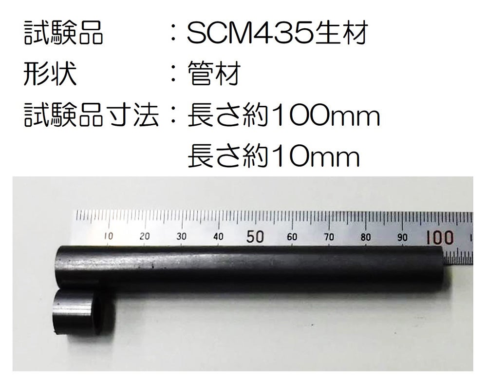 圧縮試験の事例を図11に示します。試験品は図11(a)のような鋼管で、長さが異なるもの(L=10 mm、100 mmの2本)を用意して、変形様式の違いを評価しました。