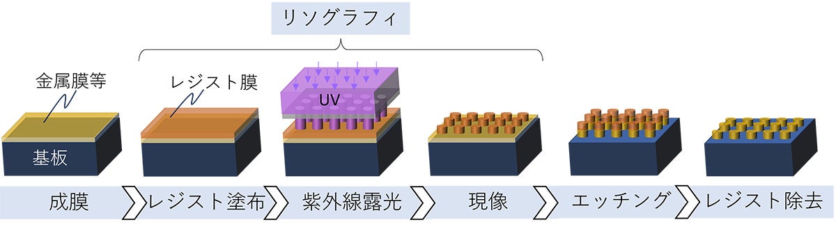 金属、半導体、酸化物膜などの薄膜を基板上に成膜する技術(関連設備:イオンビームスパッタ、マグネトロンスパッタ) - リソグラフィ工程